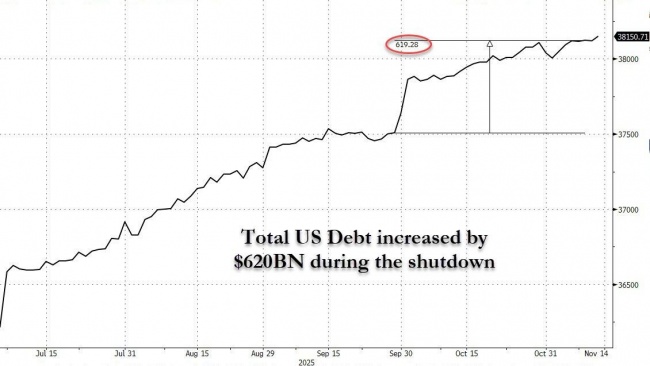 Старая армянская пословица: "Нет денег - нет денег!" dartstrade Блог им. dartstrade 17 ноября 2025, 09:05 Долг США вырос на 620 миллиардов долларов за время приостановки работы правительства.