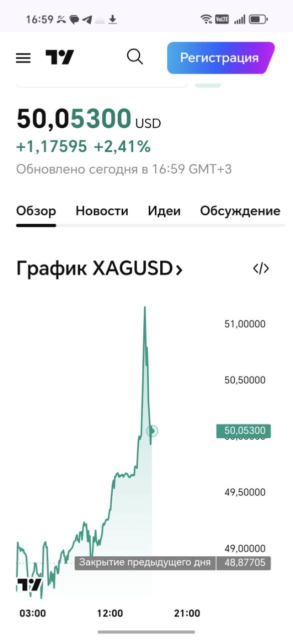 Серебро сегодня в течении биржевых торгов ненадолго достигло нового исторического рекорда стоимости, а цена серебра за унцию похоже закрепилась на уровне $50