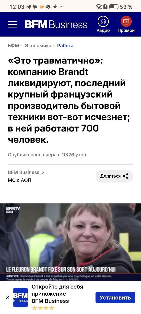 Последний остававшийся на плаву крупный французский производитель бытовой техники Brandt теперь банкрот и вступает в фазу ликвидации