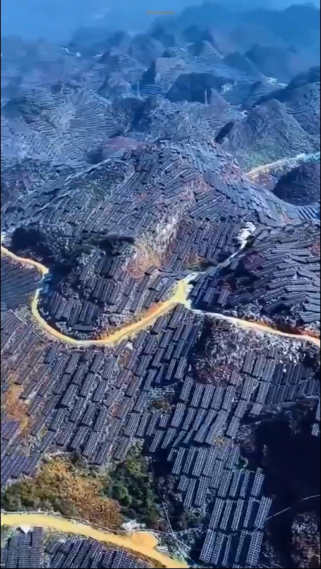 Солнечные панели заполонили горы: так сегодня выглядит ландшафт горной провинции Гуйчжоу в Китае.