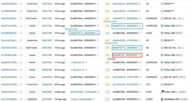Как так вышло? Всё просто. После того как жертва отправила тестовые $50, мошенники сделали микротранзакции с кошелька, у которого совпадали первые и последние 4 символа адреса. Обманутый, по привычке, скопировал последний адрес из истории транзакций и отправил на него все свои деньги.