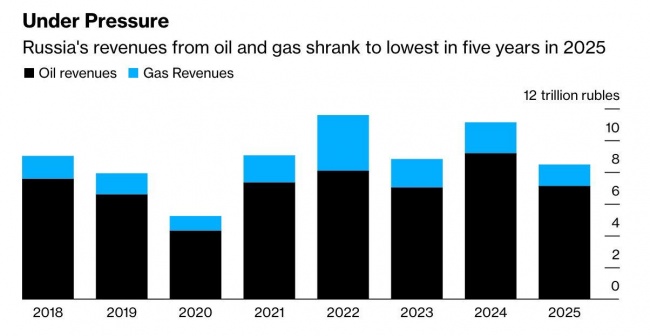 Доходы России от продажи нефти и газа рухнули до минимума за пять лет — Bloomberg.