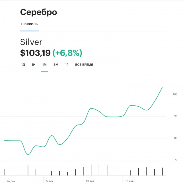 Серебро впервые в истории пробило $100. Всего за полгода цена на металл выросла в 2,5 раза.