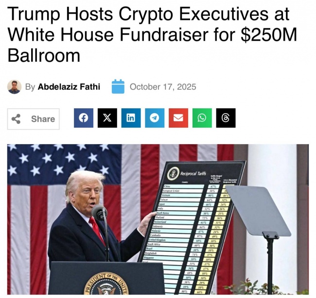 Трамп провёл закрытый ужин в Белом доме, на котором собирал средства от лидеров криптоиндустрии на строительство банкетного зала стоимостью $250 млн (около 20 млрд рублей).