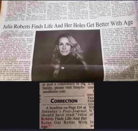 Заголовок на странице 4-й субботнего номера Post-Journal следует читать: «Жизнь и роли Джулии Робертс с возрастом становятся только лучше»
