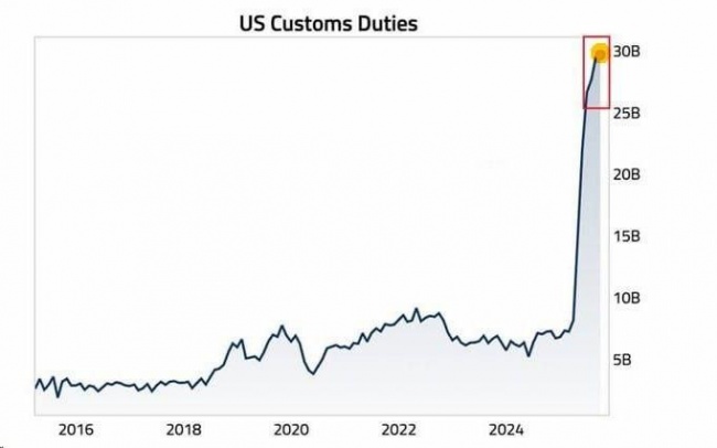 В 2025 финансовом году доходы США от пошлин выросли до рекордных $195 млрд, что в 2,5 раза превышает показатель 2024 финансового года, — Bloomberg.