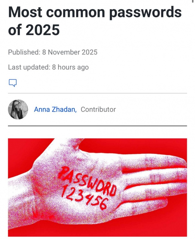 Исследователи из Comparitech показали самые популярные пароли в 2025 году.