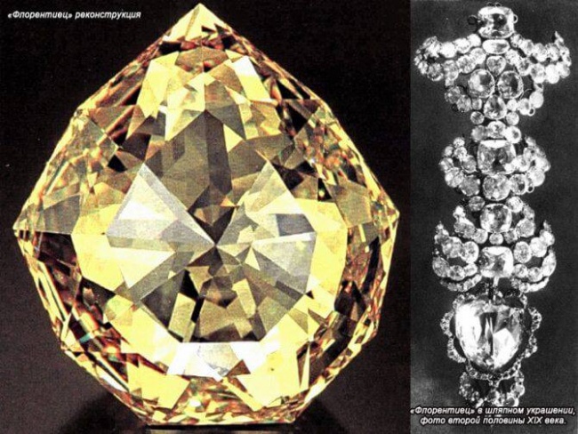«Флорентиец» — бриллиант светло-желтого цвета с легким зеленым отливом, его масса составляет более 137 карат. Бриллиант связан со множеством легенд, возводящих его происхождение к итальянской династии Медичи, завозу в Европу португальскими колонистами из Индии и огранке в средние века для бургундского герцога Карла Смелого. После падения имперской династии Австрии пошли слухи о том, что бриллиант был украден, поделен и перепродан.