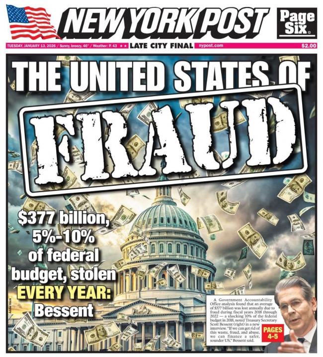«$377 миллиардов, то есть 5-10% госбюджета, разворовываются ежегодно» — министр финансов США Скотт Бессент.