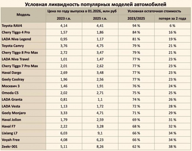 Всего за 2 года китайский электрокар теряет почти 40% стоимости. Для сравнения: Toyota RAV4 за тот же срок дешевеет всего на 6%.