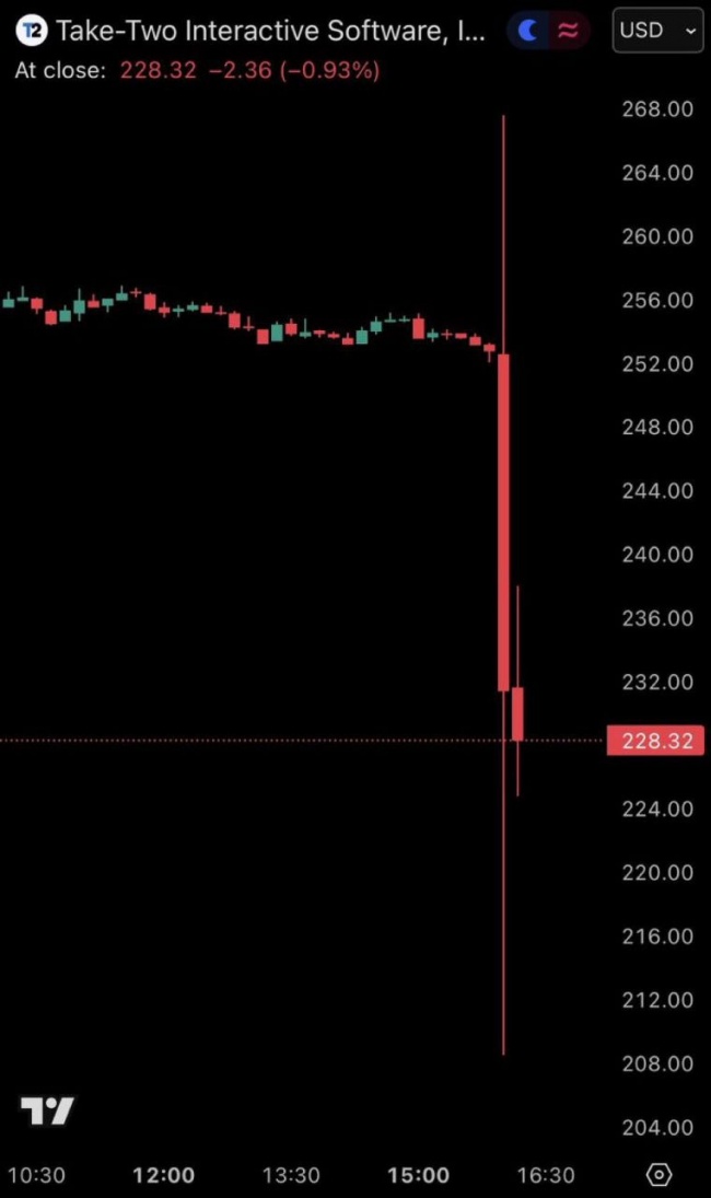 Издатель GTA 6 за минуту потерял $5 млрд из-за переноса игры. Акции Take-Two рухнули на 11%.