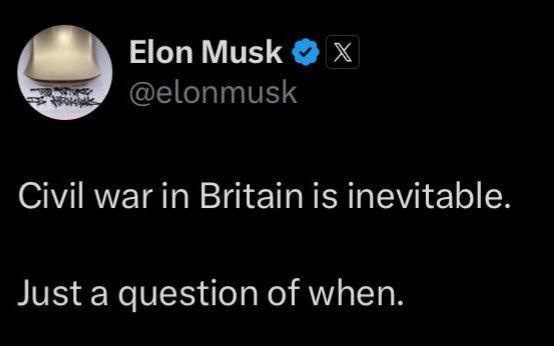 Илон Маск ждет гражданскую войну в Великобритании
